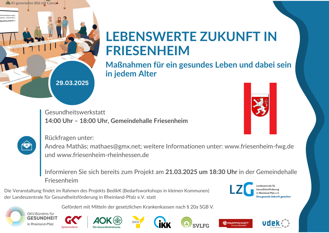 Kommen Sie deshalb am 29.03.2025 zu unserem Workshop, um mit der LZG und uns zusammen weitere Möglichkeiten für eine lebenswerte Zukunft in Friesenheim zu entwickeln.